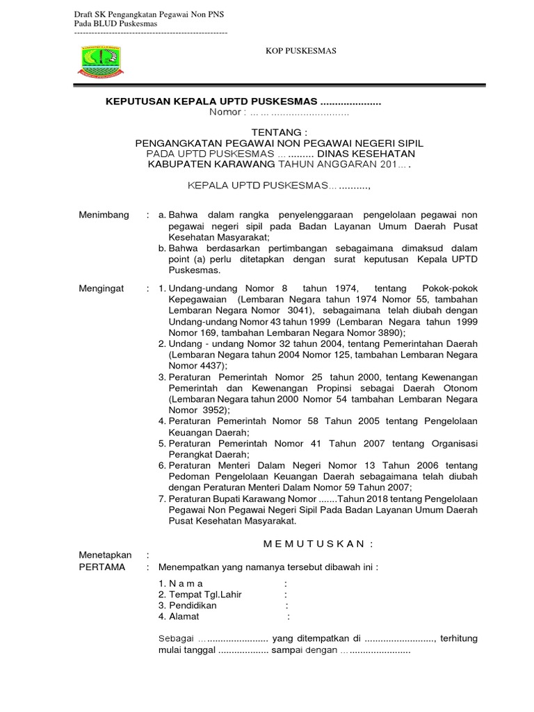 Surat edaran kemenpan rb tertanggal 30 april 2019, nomor b/500/m.sm.01.00/2019 peraturan menpan rb tentang pengangkatan cpns menjadi pns tahun 2019 perihal cpns yang belum diangkat menjadi pns yang melewati batas waktu. Salinan/fotocopy sah sk pengangkatan menjadi pns. Landasan yuridis peraturan pemerintah nomor 98 tahun 2000 tentang pengadaan pegawai negeri sipil sebagaimana telah diubah dengan peraturan pemerintah nomor 11 tahun 2002;peraturan. Membuat petikan sk pengangkatan pns dalam jabatan fungsional. Pengangkatan cpns yang menjalani masa percobaan lebih dari 2 (dua) tahun ditetapkan oleh pejabat pembina kepegawaian setelah mendapat pertimbangan teknis dari kepala kantor regional badan kepegawaian negara.pengangkatan cpns menjadi pns ditetapkan, apabila telah memenuhi syarat sbb: Sk pengangkatan pns/cpns dan atau sk penugasan dari dinas pendidikan. Asli dan fotocopy sk pengangkatan pns (bagi sk pns salah) fotocopy karpeg; Semua rangkap 3 lembar dan diligalisir, untuk surat keterangan kehilangan dari kepolisian tidak perlu dilegalisir. Pegawai non pegawai negeri sipil (pns) pada rumah sakit umum daerah. Contoh sk kbm terbaru tahun pelajaran 2020 2019 sch paperplane. Iwan, seorang pns di sebuah kementerian, menuturkan dirinya harus mengantongi. Surat penyerahan petikan sk pengangkatan cpns menjadi pns. Pengangkatan pns melalui pemindahan dari jabatan lain dengan persyaratan: