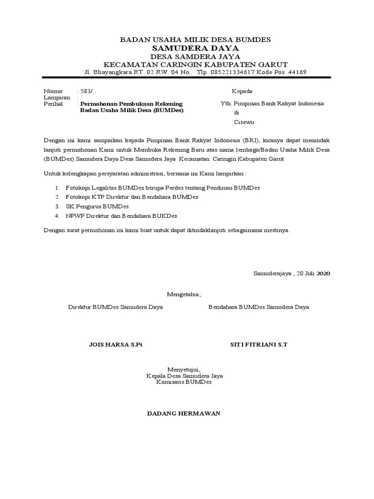 Pemegang rekening giropinjaman tergolong lancar. Nama, email alamat dan nomor hp yang terdaftar di bank · kemudian, ketik . Kepada yth, pimpinan bank negara indonesia cabang indralaya di tempat bersama ini kami kepala madrasah aliyah madinatul quran . Permohonan pembukaan rekening satker dari kpa ke eselon i, pmk 183/pmk.05/2019 . Surat pernyataan keabsahan jaminan bank (lamp.